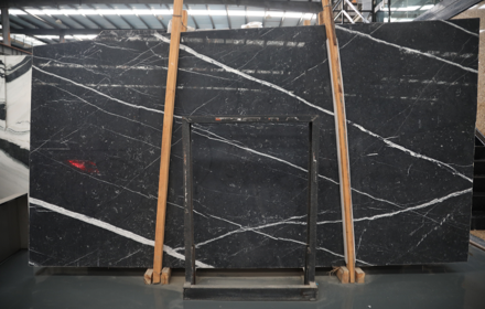 Black marquina is one of the most famous black marble in the world. The intense velvety black is so deep and soft as immense as universe containing the various white veins and fossiles like galaxy and stars ornamenting the black veils of the earth.